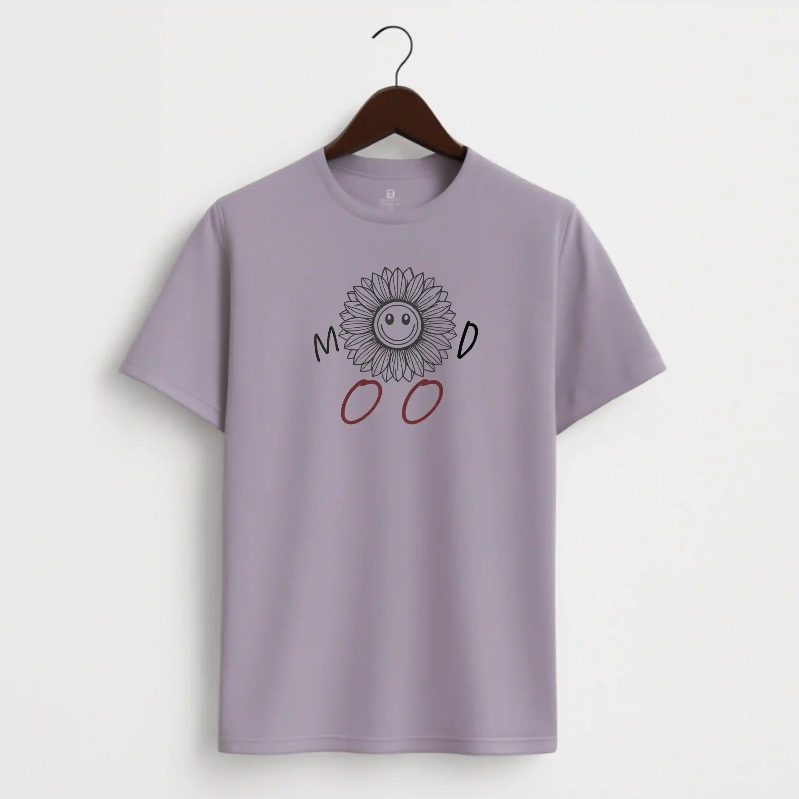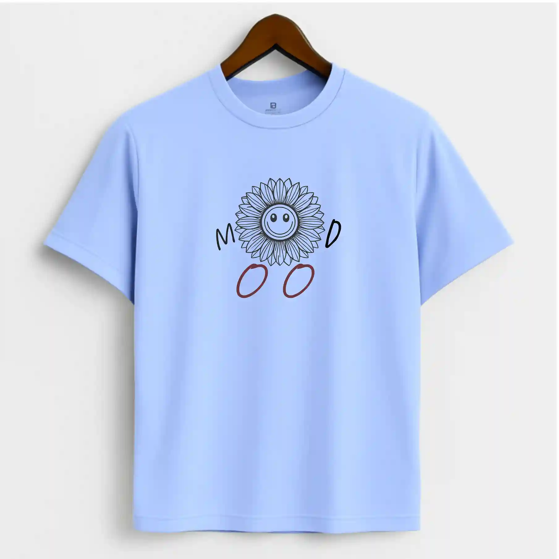 The front of the shirt features a fun and artistic “Mood” print—a happy flower where the “M” and “D” act as arms, and the letter “O” doubles as cheerful little feet. This delightful design adds a unique vibe to your outfit, making it a conversation starter whether you’re at the gym, in class, or out with friends.
